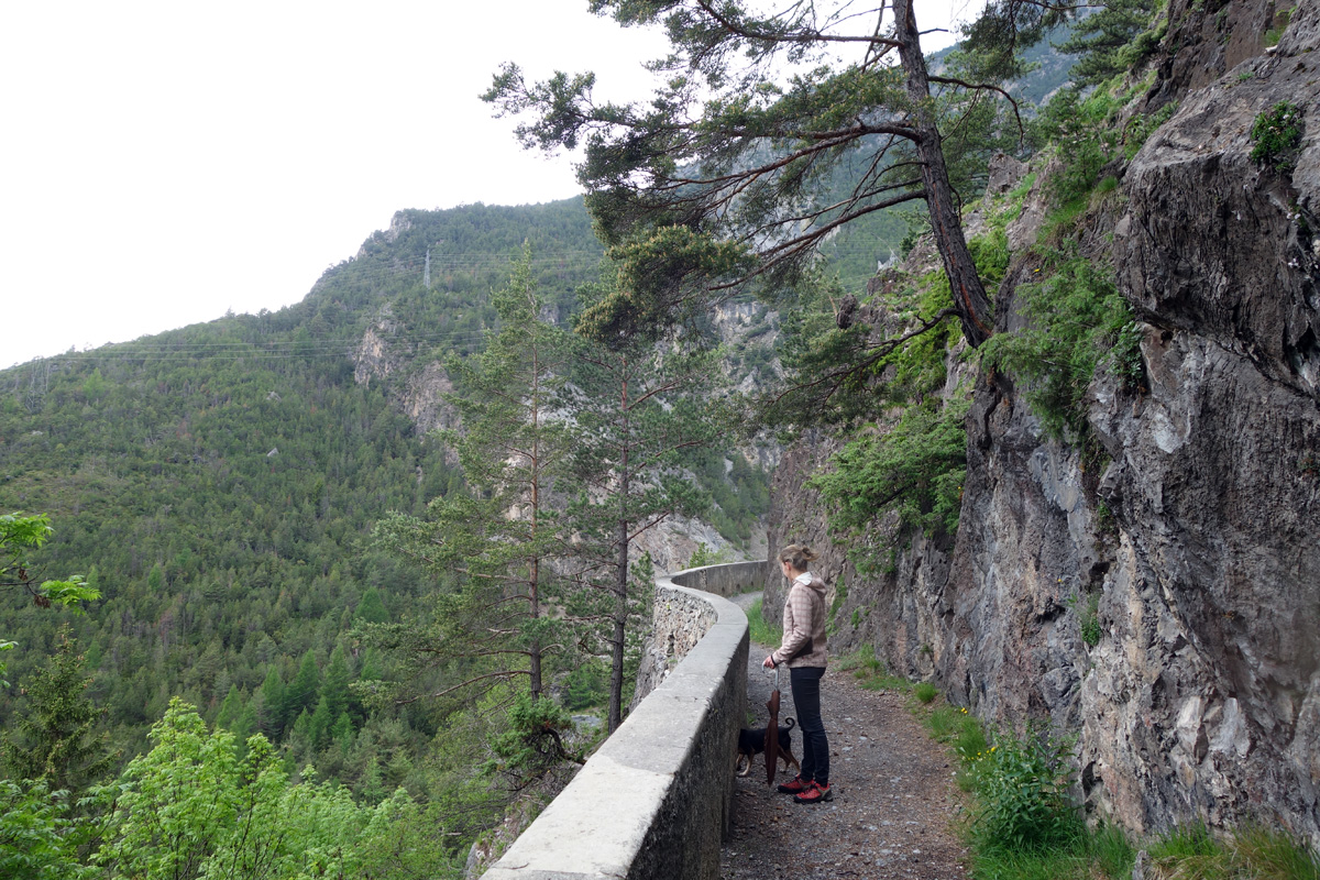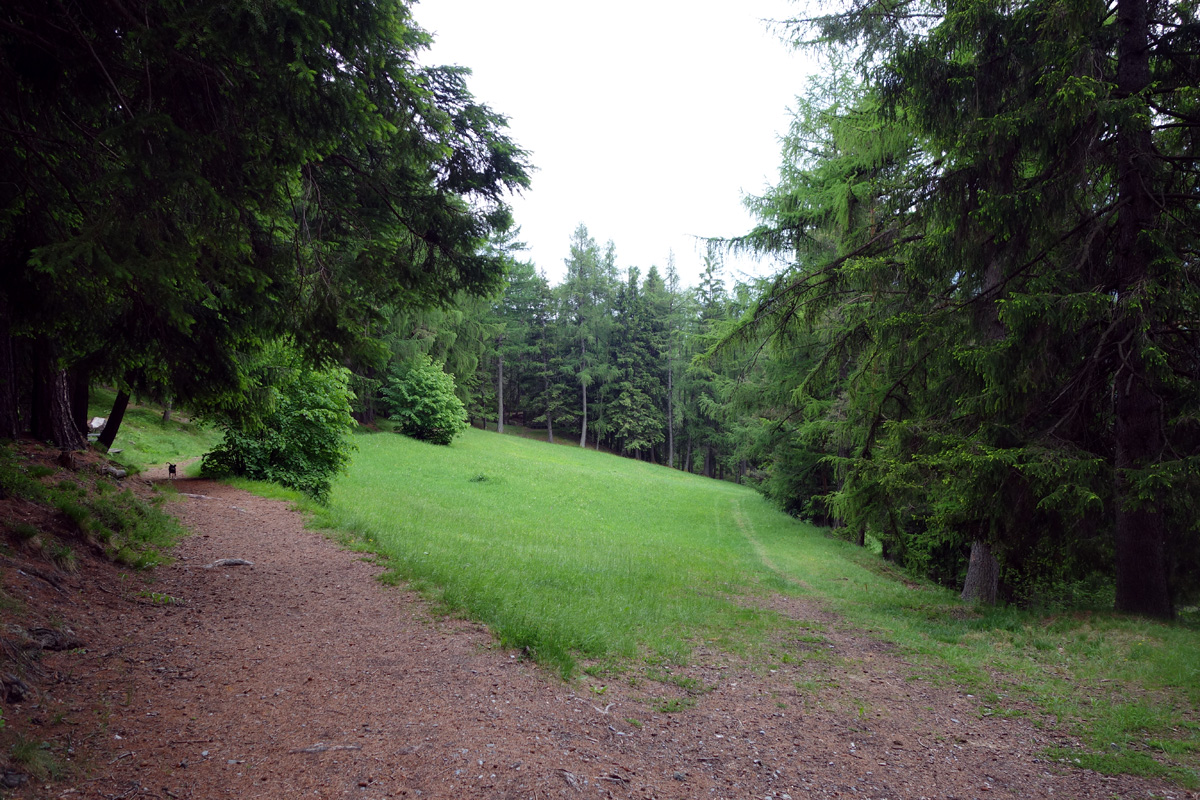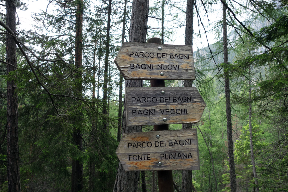 Seguendo le indicazioni per la “Fonte Pliniana”, un comodo sentiero costeggia la cinta settentrionale del Grand Hotel Bagni Nuovi. Il percorso è immerso fin dai primi passi in uno spettacolare lariceto dal verdeggiante sottobosco.